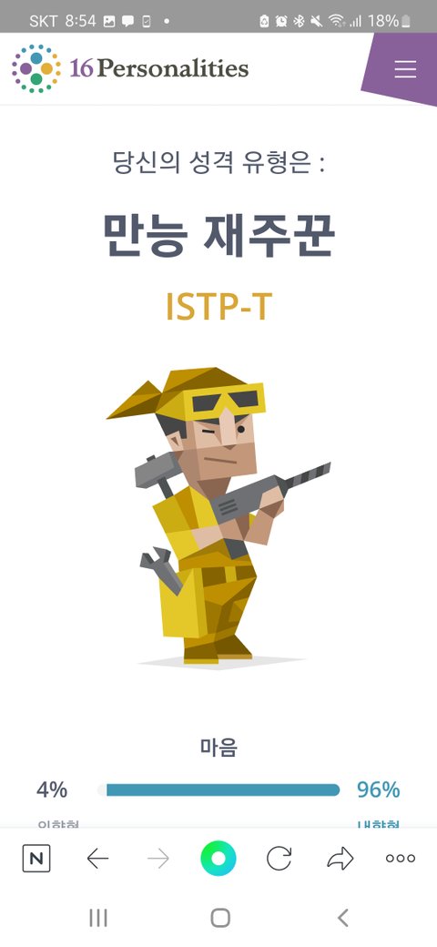istp 특징 같은거 보면 왠지 공감이 잘 안 가고..