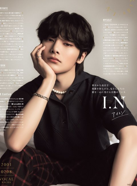 필릭스 : 지금 창빈이형이 번역기로 '전 저라고 생각해요'라는 일본어를 검색해보려고 했어요!(웃음) 전 아이엔이라고 생각해요. 어른스러운데 귀여운 부분도 있고 웃는 모습이 좋아요.