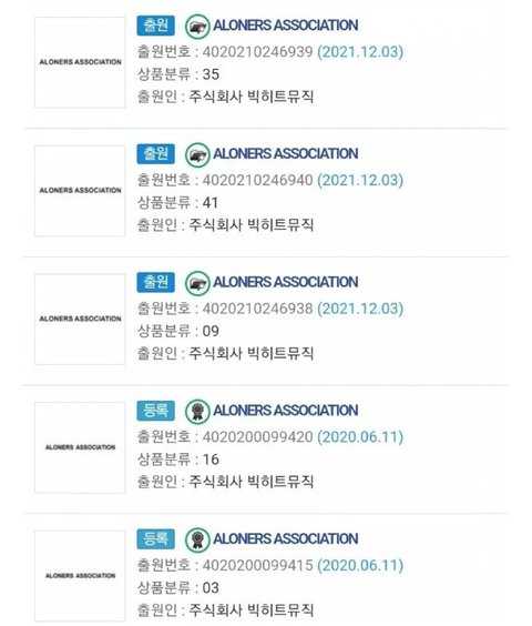 현재 빅히트(현 하이브)에서 상표 출원해있는 이름으로
