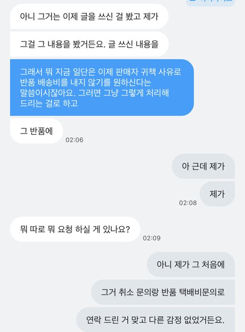 반품 사유와 상황을 지속적으로 말씀드리고 있음에도 불구하고 문제에 대한 내용은 없이 복붙하는 공식적인 답변만 일주일 째 달면서 반품 택배비 책임을 저한테 지라고만 말씀하시네요.