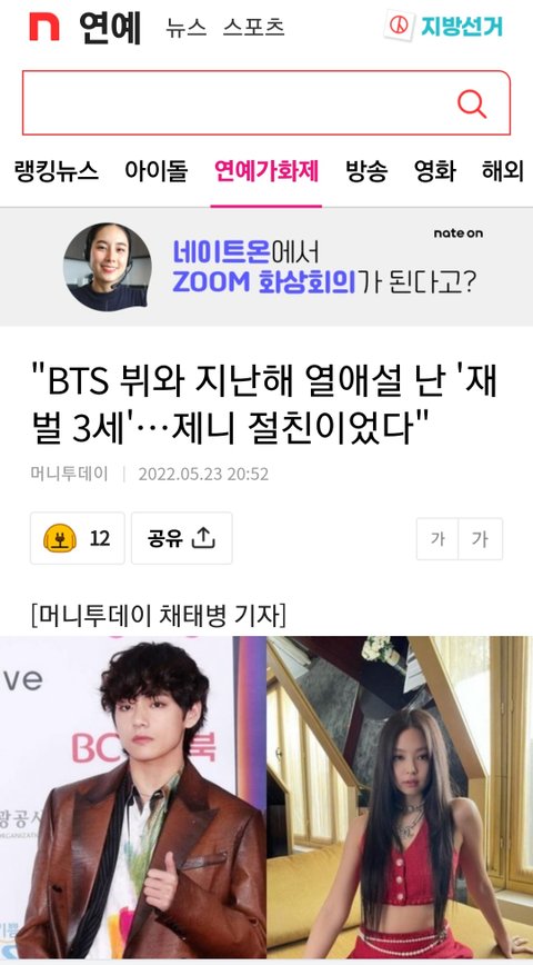 ❤️"BTS 뷔와 지난해 열애설 난 '재벌 3세'…제니 절친이었다"❤️