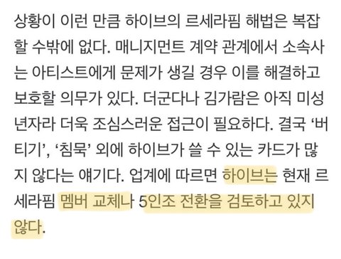 하이브는 진짜 정병 걸림? 대체 쟤가 뭐라고 회사랑 팀 이미지 망치면서까지 안고 가려함? 지금 모든 사람들이 김가람 탈퇴시키라고 계속 말하는데 상의조차 안했다니 걍 할말이 없음 니들이 가해자 범죄자랑 다를게뭐야