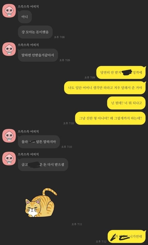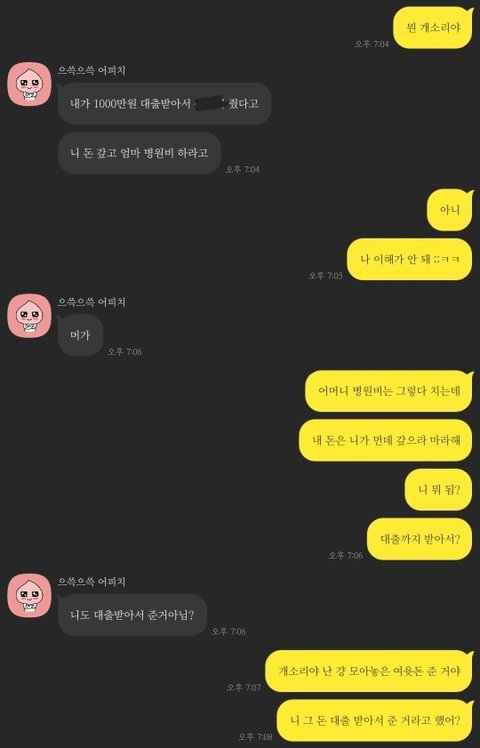 그래서 여유가 있으니까 갚을생각 일단은 하지말라고 하고 적지않은 돈을 빌려줬거든