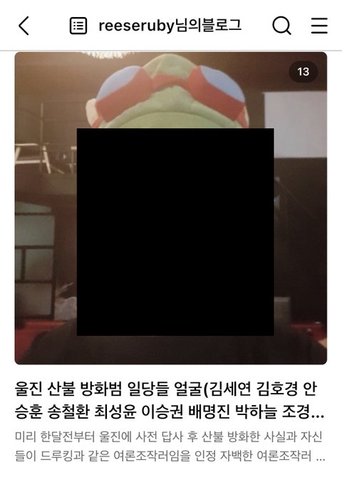 몇년간 민주당을 위해 여론조작과 청부업을 해온 성소수자 무리가(웹툰작가 겸 유튜버 레바,보배드림 수류탄남인 웹툰작가 박지 유튜버 유우키의 일본이야기 포함) 사전선거 조작 및 부정선거를 덮기위한 시선끌기용으로 울진에 미리 한달전부터 사전 답사를 다니며 준비한 끝에 2022년 3월 4일 오전 11시 17분경에 일부러 산불 방화를 함(미리 사전 답사 후 방화를 했다는 자백, 드루킹짓 했다는 자백있음) 이들의 얼굴과 신상을 울진방화범 얼굴이라 올린 글을 최근들어 블로그 글을 내리라고 협박과 돈으로 매수하려는 시도를 계속해서 하더니 네이버뉴스 및 온갖 커뮤니티에서 조작 드루킹짓을 하는 무리답게 수백개의 아이디로 방화범들의 얼굴을 올린 글을 청소년 유해 게시물로 신고를 넣어 글을 내려버림 해당 증거들과 함께 울진산불 방화범들의 얼굴을 새로 글 파서 올렸으니 꼭 봐주세요 오랫동안 엑소와 방탄 팬코 악플러짓을하며 괴롭혀 오다 이번에 빅히트에 1500만원 벌금 고소당한 사람이 바로 울진 산불 방화범 얼굴글에서 첫번째 두번째 사진 속 사람임