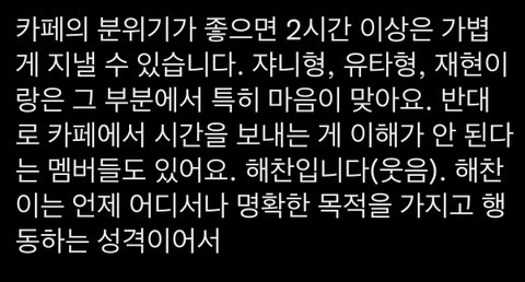 엊그제 쟌토리 셋이 카페 갔었다길래 생각난 인터뷰,,