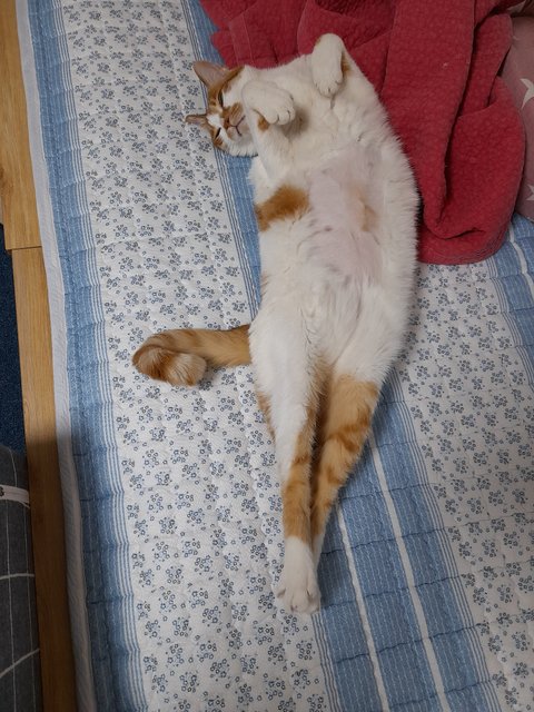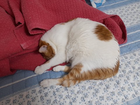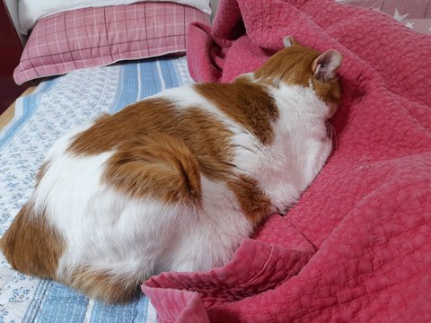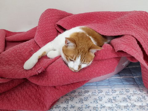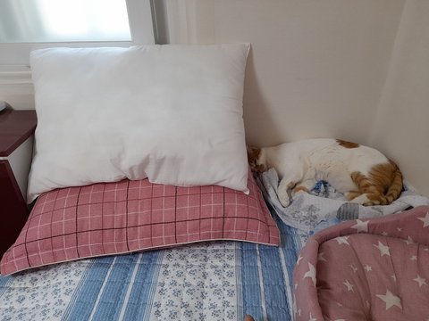 외출 후 집에 들어오니 이불덮고 자고 있음.