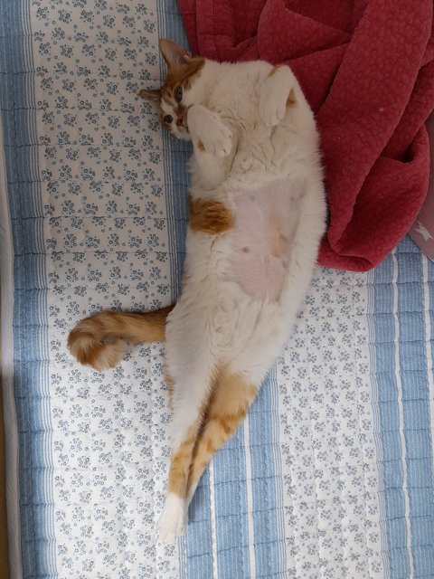 요염함을 자랑하며 털민 배를 보여주고 있음.