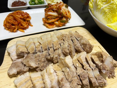 양심상 운동을 하고 와서 먹겠다고 해서 시간도 남은 김에 간단하게 장을 봐다가 만들어 먹은 수육이에요!