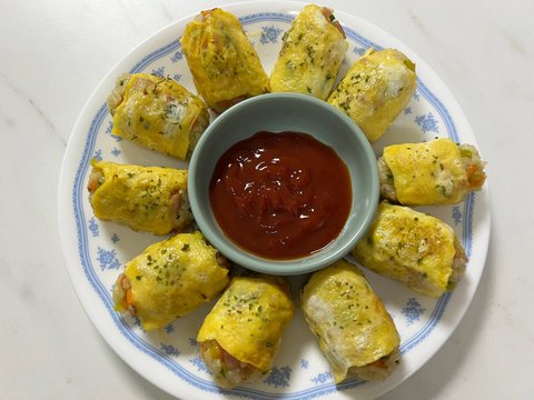밥이랑 굴 소스를 넣어 볶아주고 달걀물을 얇게 펴서 말아줬어요!