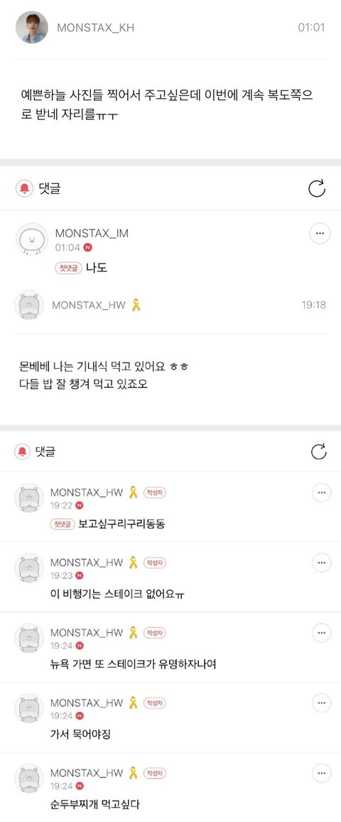 와 새삼 진짜 애들 소통 장난아니다... 심지어 저기에 다들 갠스타랑 공트도 올려줌 브이앱도 해주고... 짱스타엑스 사랑해❤
