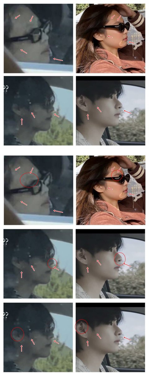 다들 뇌피셜 까지 말고 현생 좀 살어라! 달랑 사진 한장에 그리 자유롭게 다녔는데 다른 사람 목격담이 전혀 없는 것이 말이 되냐? 그리고 사진으로도 비교해도 다른 사람들이다 공항 렌탈업체 거리 길 등 그렇게 자유롭게 다니고 사람들 많았는데 아무 다른 목격자가 없다. 회사에서는 대응 가치가 없다고 하는 거 뿐이고 사진 확대해서 이성적으로 잘 확인해 봐! 뷔의 귀 코만 비교해 봐도 확실히 다르다는 걸 알 수 있다,
