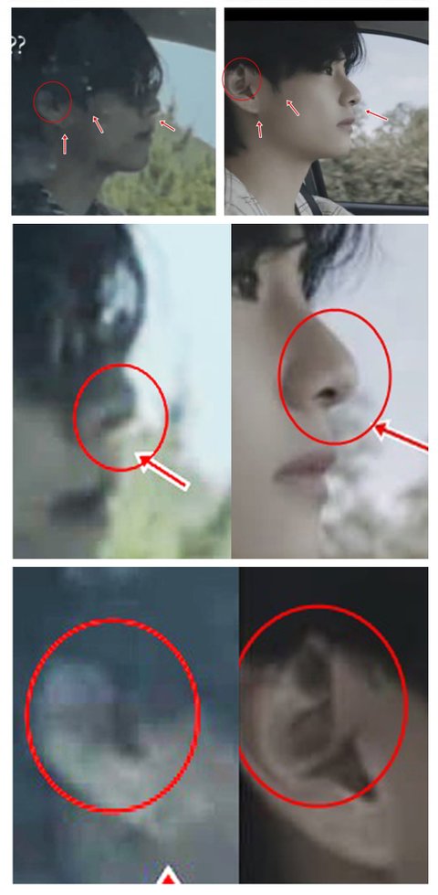 뷔가 귀가 특이해서 확대해서 보면 바로 비교가 된다 확실하게 다르다