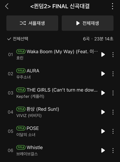 퀸덤2 파이널 음원 뭐가 제일 좋음?