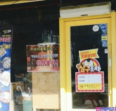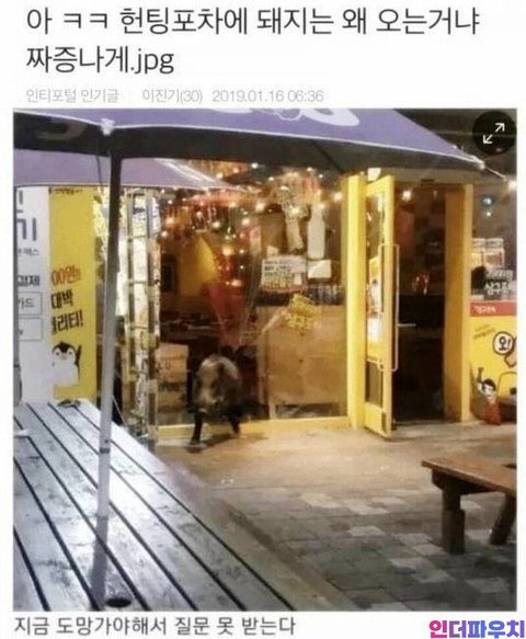 멧돼지가 출몰했던 헌팅포차의 안내문