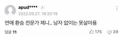 뭔 제니가 남자없이 못 살아 이런 거 고소해야하는 거 아님? 소속사는 걍 인정하는 게 나을 것 같은데 제니 불쌍해 너무 심하게 까임