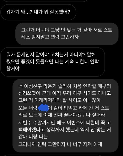 +) 결론부터 말하자면 연락 그만하기로 했어
