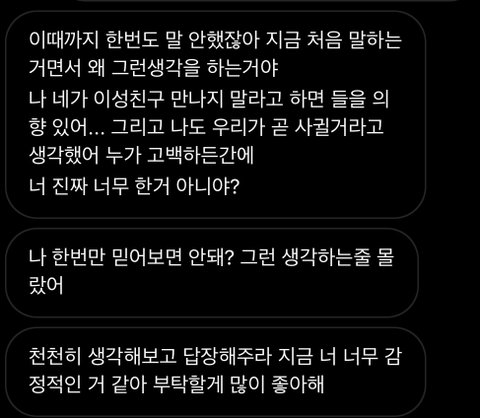 얘도 힘들었을거야 난 바빠서 썸남이랑 못 노는거고 얘는 시간 많아서 친구들 자주 만나는거잖아 내가 인간관계 개입까지 하는건 아니라고 생각 들어서 여태 못말했어