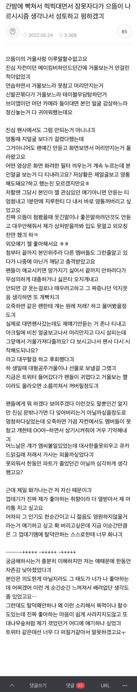 여초에 올라온 더보이즈 주연 빠혐 탈덕글