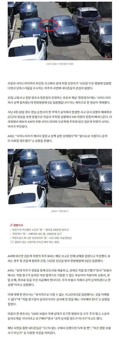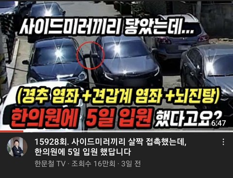 주차된 차량 사이드미러 접촉으로 상대운전자가 입원했다고 올라온 한문철tv 영상의 가해운전자 입니다.