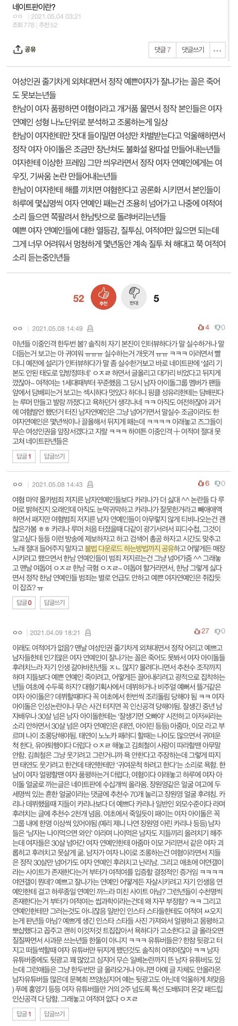 카리나 주작이니까 스엠에서 고소했지 기를쓰고 찐이라고 우기는년들 애잔하네 그럼 지들이야말로 찐이라는 증거나 가져오지 ㅋㅋㅋㅋㅋ 요즘은 픽스아트로도 주작 가능한게 저런 캡쳐짤이야 ㅠㅠ 하여간 여적여 판년들 꼬라지 하고는 ㅋㅋ