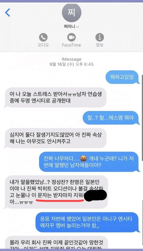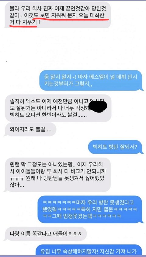근데 왜 연습생들은 문자받으면 다 지우라고 해?