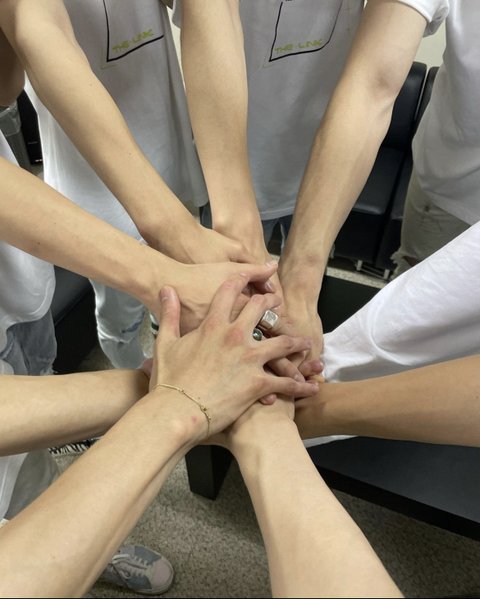 다같이 한쪽 손대고 한쪽 손은 사진 찍고 있엇단