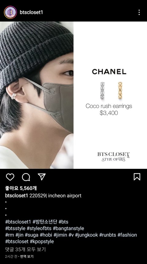 굳이 열애설직후 처음 스케줄에서 얼마전 제니가 캠페인 모델된 샤넬 코코 크러쉬 귀걸이를 굳이 하고 나타난 뷔