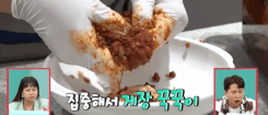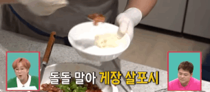 양념게장의 살을 쭉쭉 발라내고