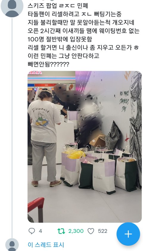 리셀러들이 오지게 쓸어담아서 정작 스테이들은 입장도 못하는 상황.....