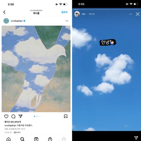 글쓴이가 의도적으로 이것만 빠뜨리고 글을 썼는데 뷔가 먼저 구름 사진 찍은 것을 인스타스토리에 올림 지디 피드는 그 후에 올라온 거고 일반적인 사람이라면 구름 따러 가자 이 말을 쓴 것도 본인이 올린 인스스의 연장선이라고 생각하지 누군가를 저격하기 위해 썼다고 생각하지 않음 잘못된 억측과 망상을 진짜 사실인 것마냥 선동하고 비난하는 거 제발 그만했으면 좋겠다 뷔가 무슨 말을 하든 무슨 행동을 하든 열애설과 관련된 것으로밖에 보지 못하는 건 너네가 그 프레임에 갇혀있기 때문이지 뷔의 잘못이 아니야