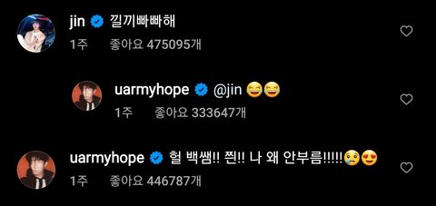 홉이 진짜 다정한거 같음 멤버들 인스타 좋아요 다 눌러주고 하나하나 다 챙겨주고 누나있어서 그런가 원래 성격이 그런가 진짜 섬세하고 다정함 팬들한테도 뭔 일 있을때마다 사진 다 울려주고 진짜 석진이 아니 방탄 전원이 홉이 좋아 죽는거 뭔지 알겠음