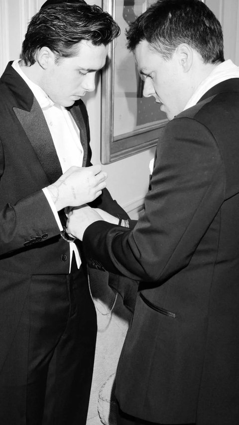 디올 맞춤 턱시도에 장모님이 선물했다는 다이아몬드 체인 다는 브루클린 베컴