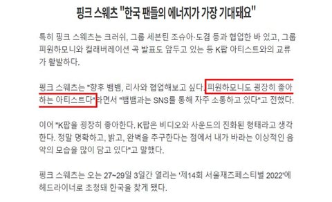 근데 피원하모니 콘서트에 핑크스웨츠가(?) 나타남(?)