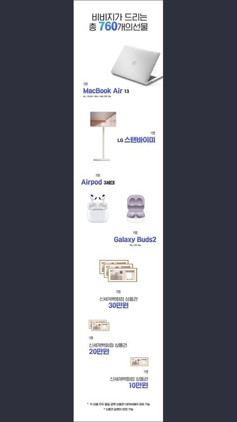 팬들 제외 타팬들중에서 비비지 뽑은분들 한해 추첨으로 600명주고 760개의 상품주네..퀸덤2 비비지 우승할려고 작정하네ㅋㅋ