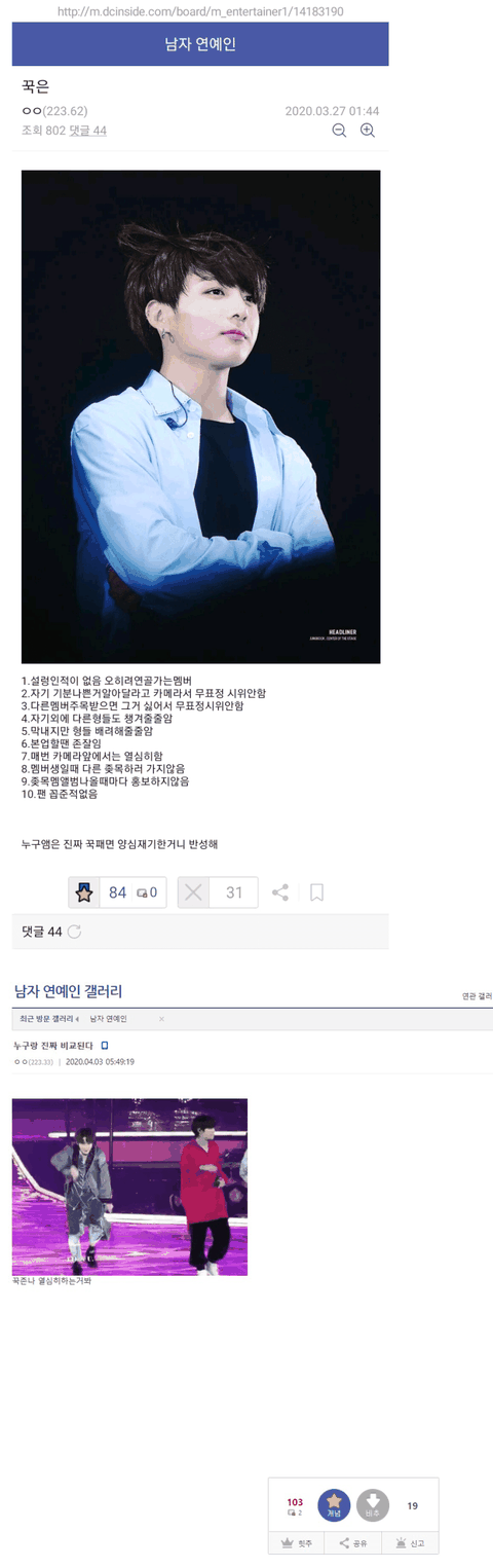 얘네한테 미친 정병들은 약간 찐 정병인듯 하나하나 물고 늘어지고 뭔가 진심 정신병자들 보는기분 요즘은 뷔 까글 매일 올라오는데 예전에 정국까글 도배될때도 비슷한 데자뷰임