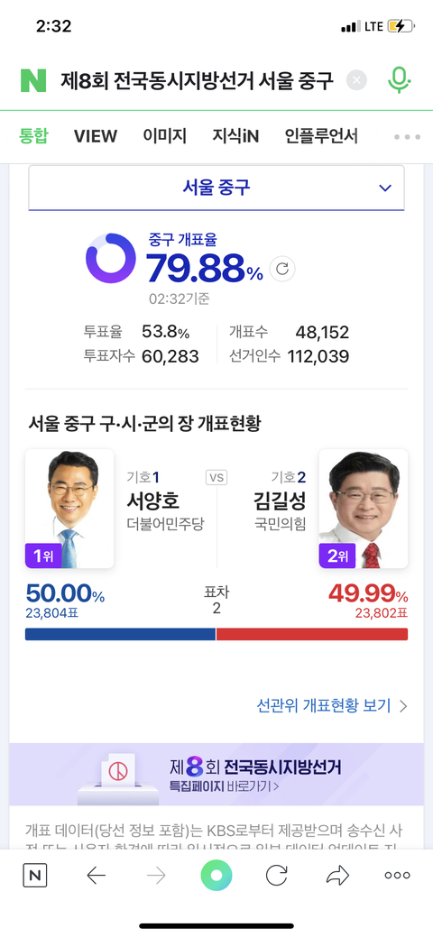 와근데 무소속인데 비등비등하네