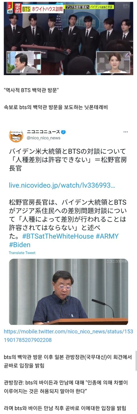 방탄이 백악관에 가자 바로 입장을 밝힌 일본정부