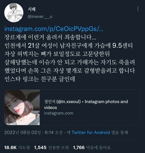 여기서 여자>남자에게 살해당함 이렇게써서 뭔가 어색한거같음 아님ㅈㅅ 쨋든 심각한일이네 다들