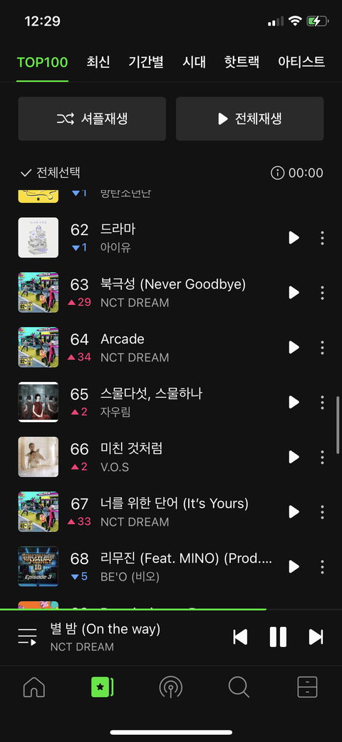순위 상승폭이랑 버퍼링 수록곡 들어온거봐..