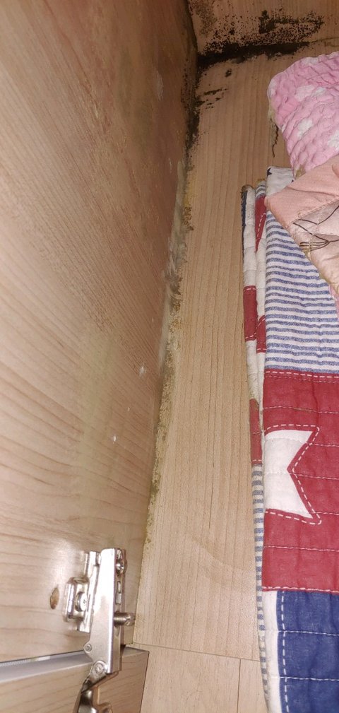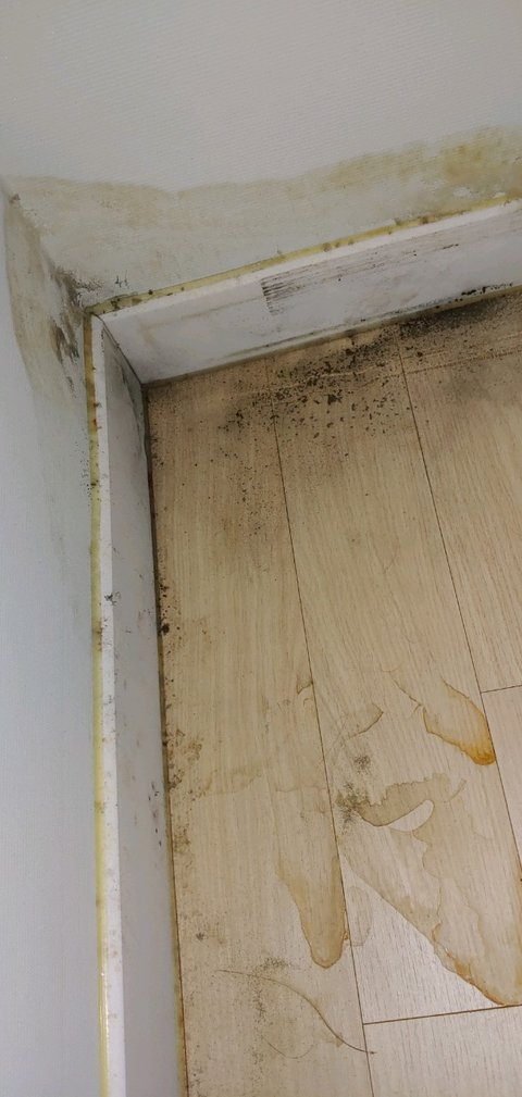옷장 바닥 모서리에 까만 곰팡이가 많이 폈고
