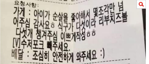와 진짜 저런거 요구사항 들어오면 그냥 주문 취소 눌러버려야지 .....아예 처먹지도 못하고 리뷰도 못 달게