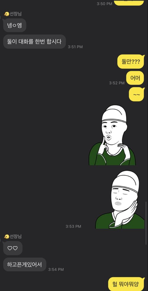 실제로 둘이 대화할땐 개초딩들인데 카톡은 왤케 다정하냐ㅋㅋㅋㅋㅋㅋ