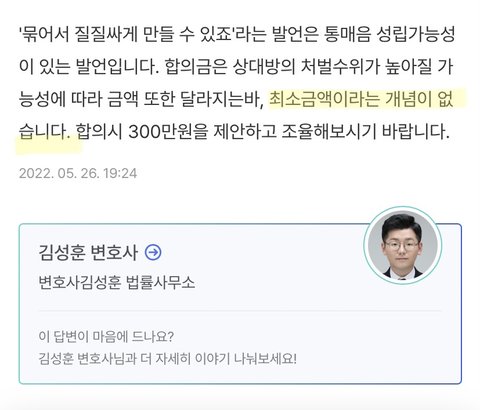 300만원으로 합의했다