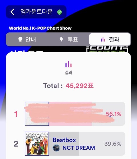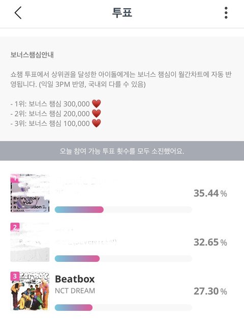 쇼챔이랑 엠카 둘 다 격차가 꽤 커 ㅠㅠ 투표 열심히 하자