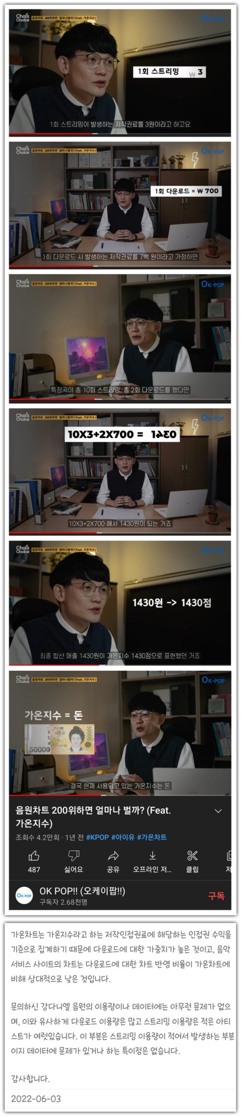 가온은 매출차트라서 그래 가온에서 만든 영상 보면 알거야 ╋) 가온차트 답변도 추가함