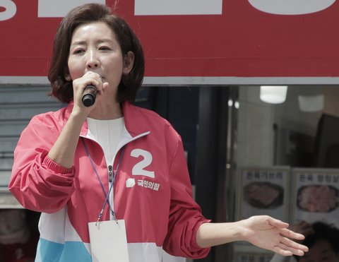 (사진 설명) 나경원 전 국민의힘 의원이 3·9 대통령선거와 6·1 지방선거까지 열심히 뛰었지만 윤석열 대통령 취임식 때 좌석 한 자리도 받지 못해 아쉬워했다. 사진은 나 전 의원이 지난달 30일 울산 중구 태화시장 일대에서 "중구지역 지방선거 후보자들을 당선시켜 달라"며 지지를 호소하는 모습. /사진=뉴스1