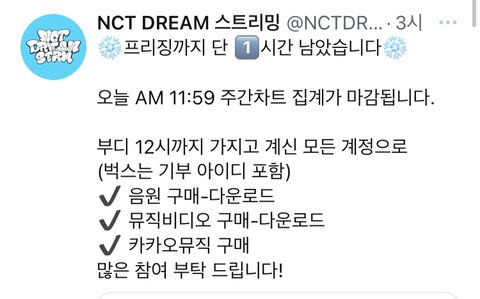 가온 주간 차트 집계 마감일이기 때문에 시간이 얼마 없어