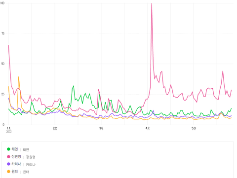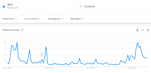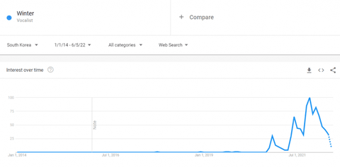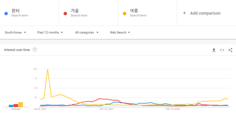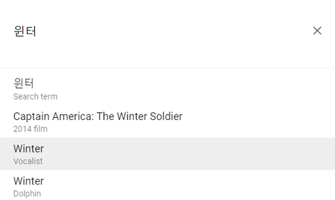 구글 트렌드에서 윈터라고 치면 자동 검색기능이 뜨는데,
