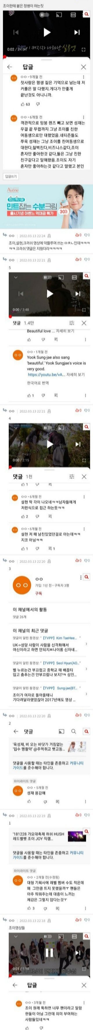 조이가 ㄹㅇ 고소해야지 솔직히 조이가 뭐 나온게 있냐 탈덕수용소 영상 댓글들 진짜 보면 기빨릴 정도야 인증 증거 하나없이 내가 아는 사람이~ 아는 언니가~ 하면서 인성이 뭐니 성격이 뭐니 짭썰 파티에 남자를 어리고 늙고 안가리고 만나고 가스라이팅을 하고 어쩌고 저쩌고 진짜 미친년들 같음ㅋㅋㅋ 조이 인성 어쩌고 하면서 떠돌아다니는거 보면 그냥 유튜브 댓글. 커뮤니티 댓글. 블라인드 댓글. 인스타 가계정. 이런건데 솔직히 그런건 당장 나도 쓸 수 있음 잘못한 거 하나 없는 사람 그냥 본인들 재밌다고 짭썰 공유하고 이야기 지어내서 까는거 진짜 없어보임