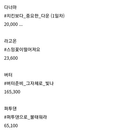 방탄 이번 모총 실트량 화력 비교